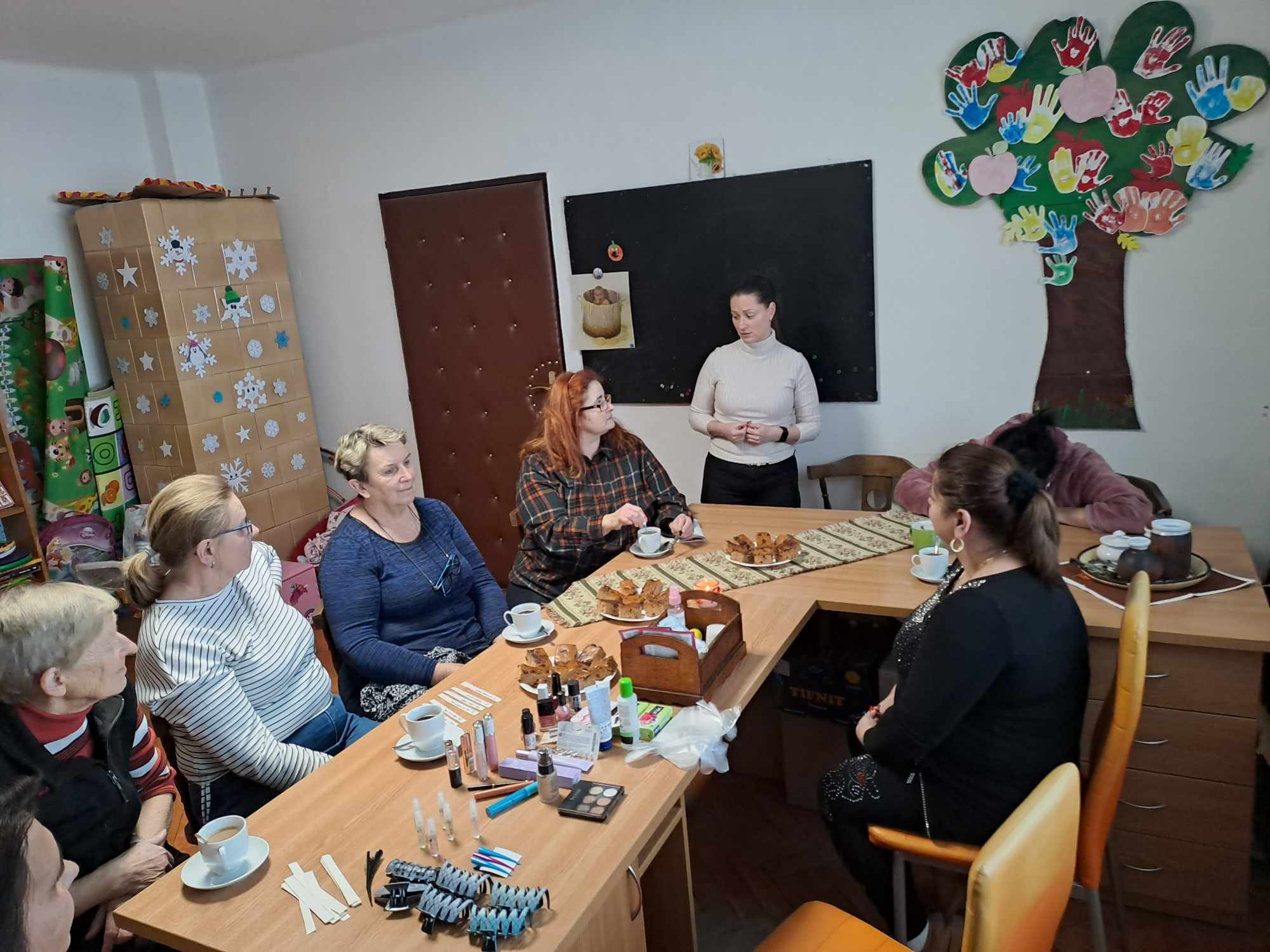a občerstvením pri skrášlení - ošetrenie pleti, manikúra a líčenie. Dámy si mohli oddýchnuť od každodennej rutiny a spraviť si čas pre seba a prísť na iné myšlienky – oddýchnuť si a ako to my ženy vieme aj troška poklebetiť.