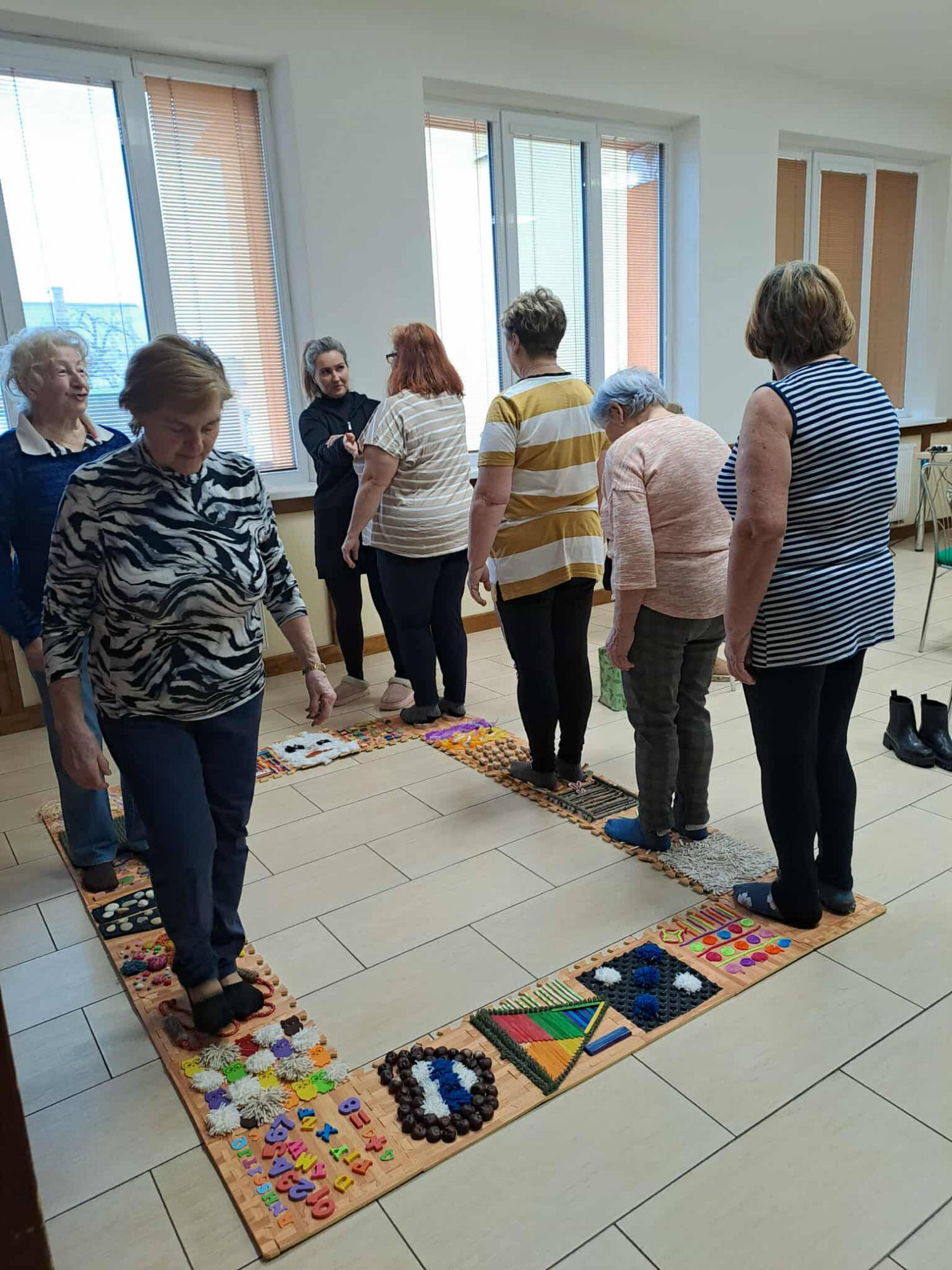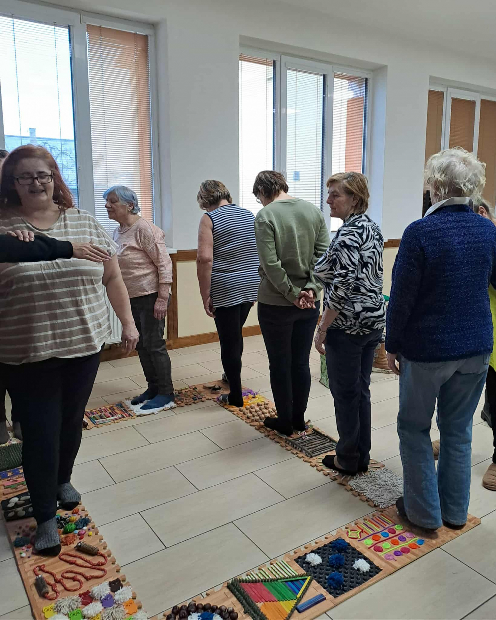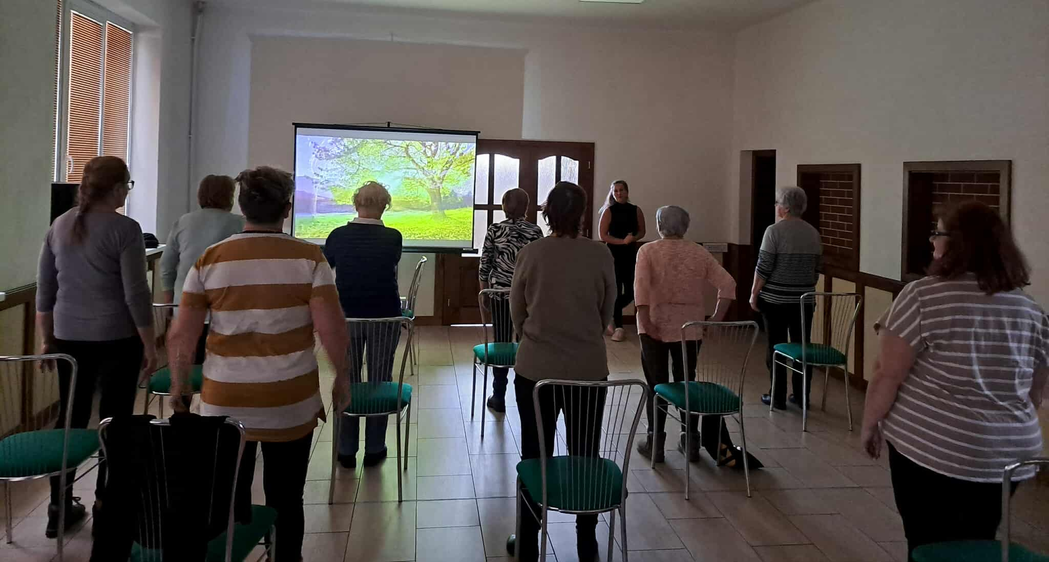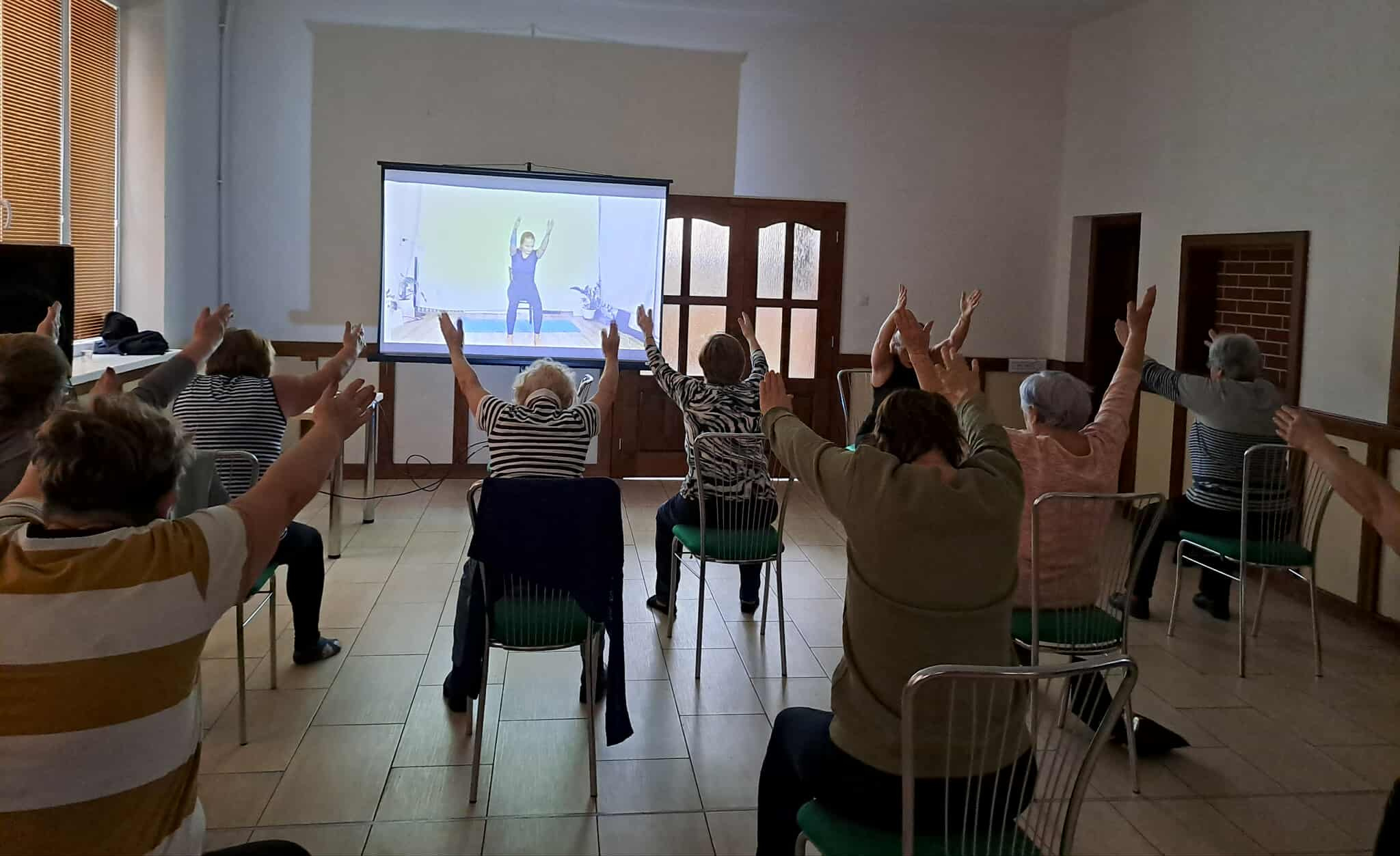 Účastníčky aktivity si mohli vyskúšať jednoduché cvičenia na stoličkách, zamerané na rozhýbanie tela, zlepšenie pohyblivosti, rovnováhy a uvoľnenie napätia. Dychové a relaxačné techniky prispeli k celkovej psychickej pohode a vnútornému pokoju.Program doplnil senzomotorický chodník, ktorý podporil masírovanie chodidiel, lepšie prekrvenie dolných končatín a stabilitu pri chôdzi. Pre veľký úspech a spokojnosť účastníčok nás seniorky poprosili o pokračovanie aktivity v pravidelnom – týždennom – intervale, čo nás veľmi potešilo a utvrdilo v zmysle takýchto stretnutí.