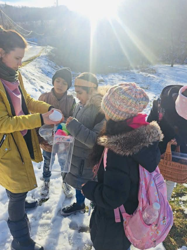 Vybrali sme sa do zimnej prírody práve v období, keď sa k mrazu začína pridávať aj slnko. Deti mali možnosť pozorovať, objavovať a doslova sa dotknúť zimy – jej zmien, zákonitostí a tajomstiev. Spoločne sme skúmali skupenstvá vody – tuhé (sneh, ľad), tekuté (roztápajúci sa sneh) aj plynné (para z úst). Porovnávali sme, kde sa sneh topí rýchlejšie a prečo, prečo ho je viac na zemi ako na ceste, aj to, prečo sa snehuliak postupne stráca pred očami