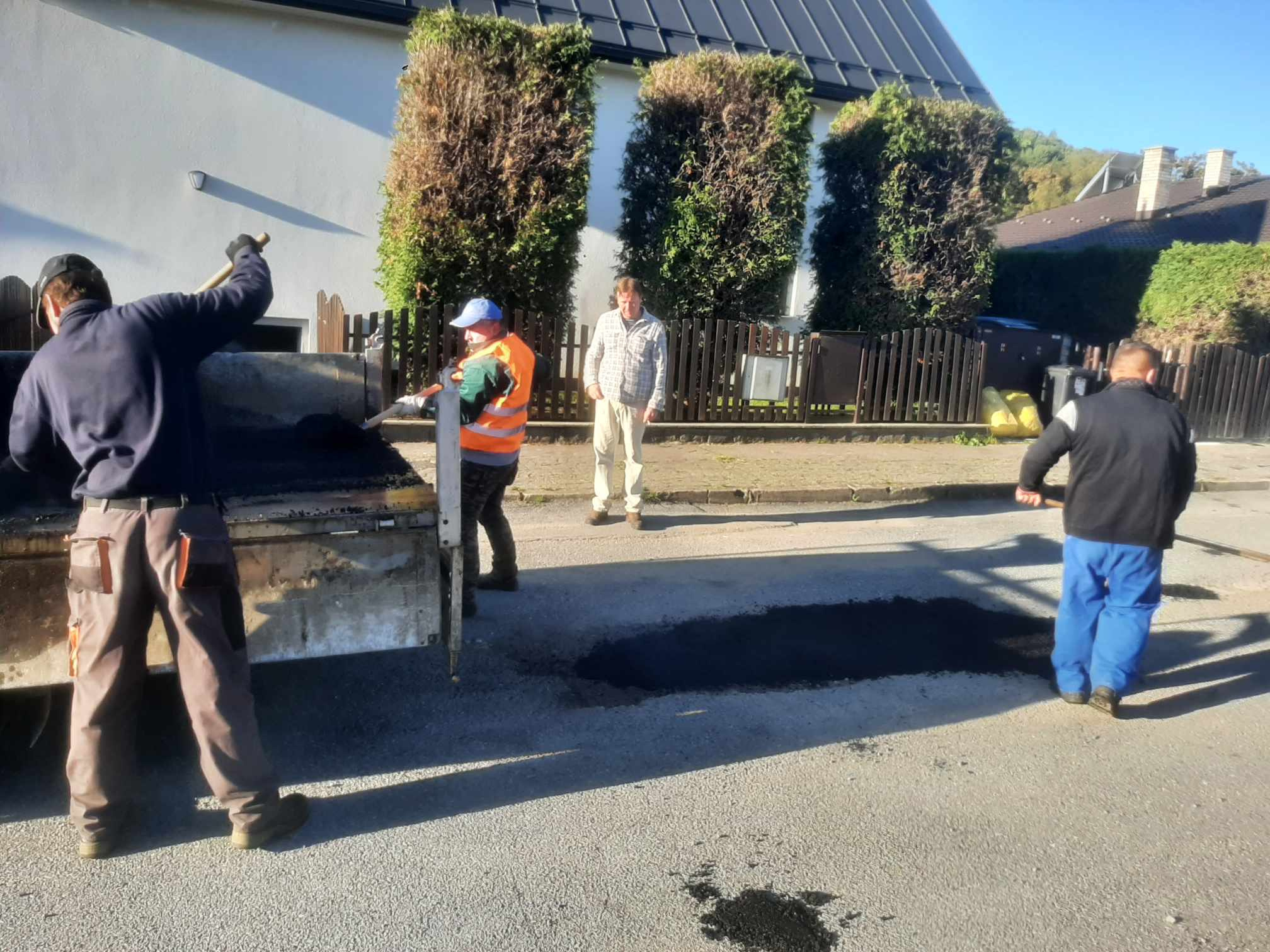 Bezpečnosť občanov je pre nás prvoradá, preto sme sa postarali aj o opravu a vyasfaltovanie potrebných úsekoch v obci, ktoré si to vyžadovali. Ďakujeme silným chlapom