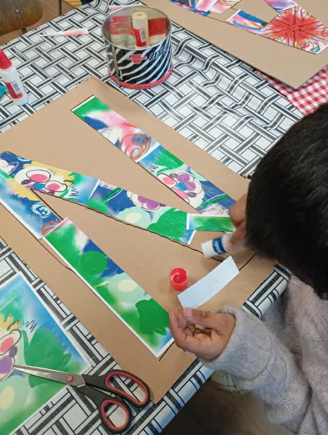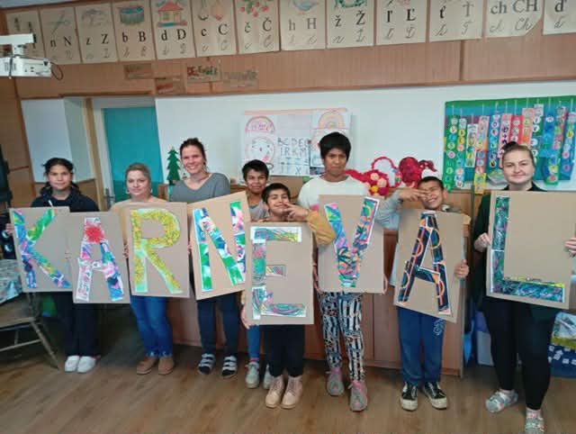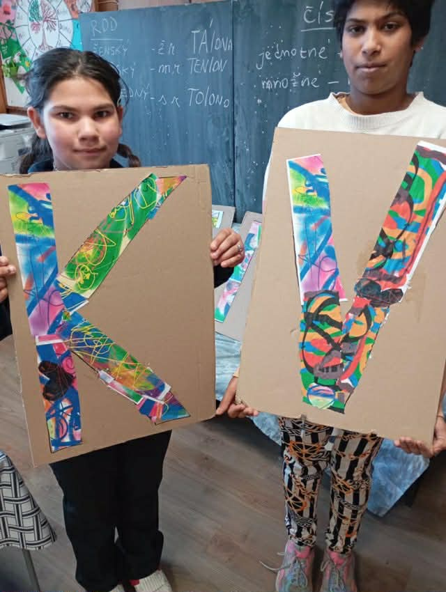 Tieto digitálne výtvory sme následne vytlačili a pustili sa do manuálnej práce – deti strihali, orezávali a lepili svoje návrhy na pripravené šablóny písmen. Spoločne tak vznikol farebný nápis „KARNEVAL“, ktorý sa použije ako výzdoba na pripravovaný karneval 04.03.2026 o 10:00 hod. v Kultúrnom dome - .