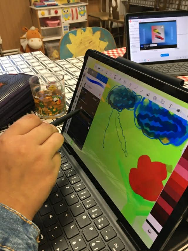 V Rozvojovom tíme Bzenov sme zrealizovali vzdelávaciu aktivitu s názvom Písmená v obrazoch, ktorá spojila digitálne technológie s tradičnou výtvarnou tvorbou. Deti pracovali na tabletoch v grafických programoch, kde sa učili používať rôzne nástroje – meniť hrúbku čiar, pracovať s paletou farieb, experimentovať s krivkami a objavovať široké možnosti digitálneho kreslenia. Kreativite sa medze nekládli a vznikli originálne farebné „tapety“ plné fantázie a nápadov.