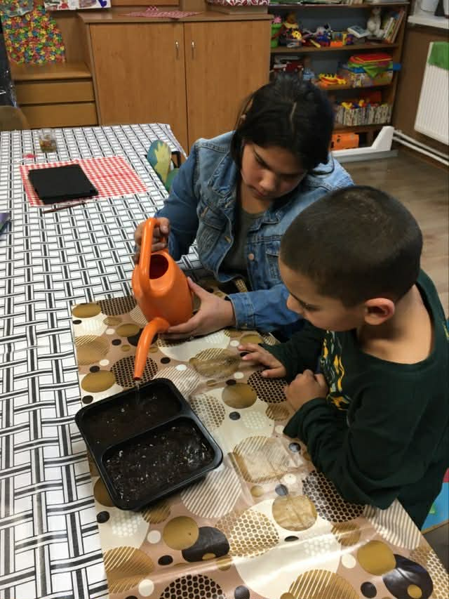 Kvetináče sme uložili na svetlé a teplé miesto, kde sa o ne budeme pravidelne starať, až kým nepríde čas presadiť rastlinky do záhonu. Deti sa tak učia zodpovednosti, trpezlivosti aj tomu, ako prebieha rast rastlín v praxi.
