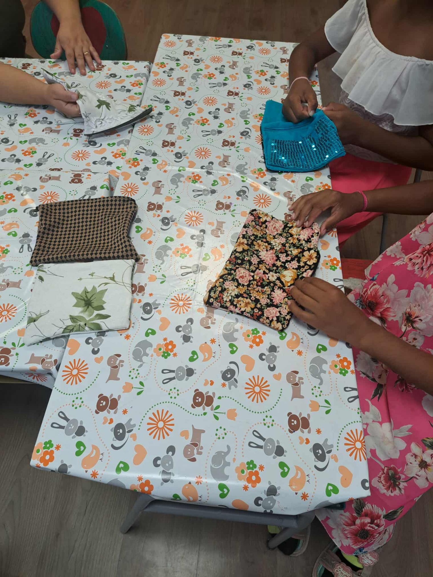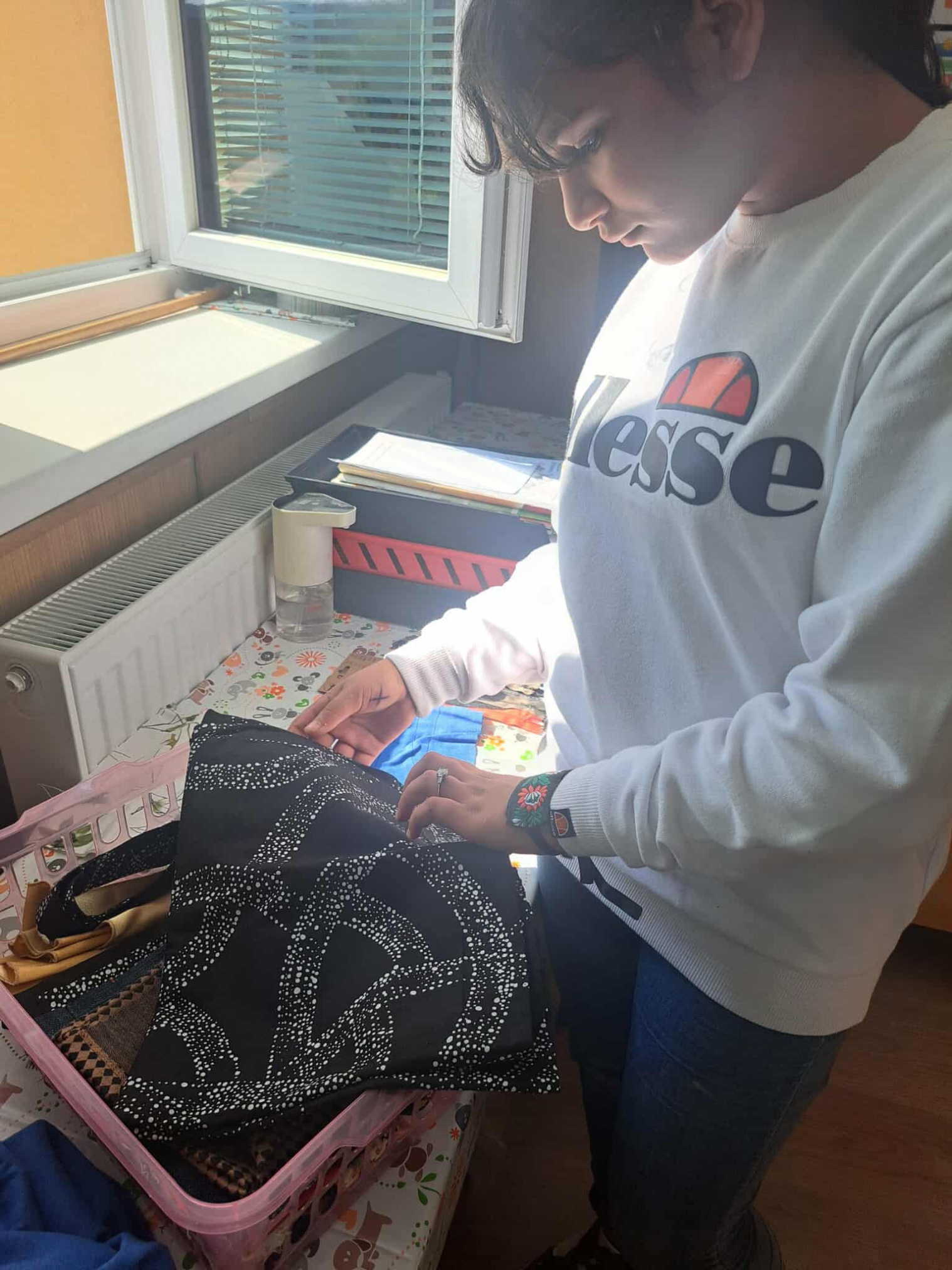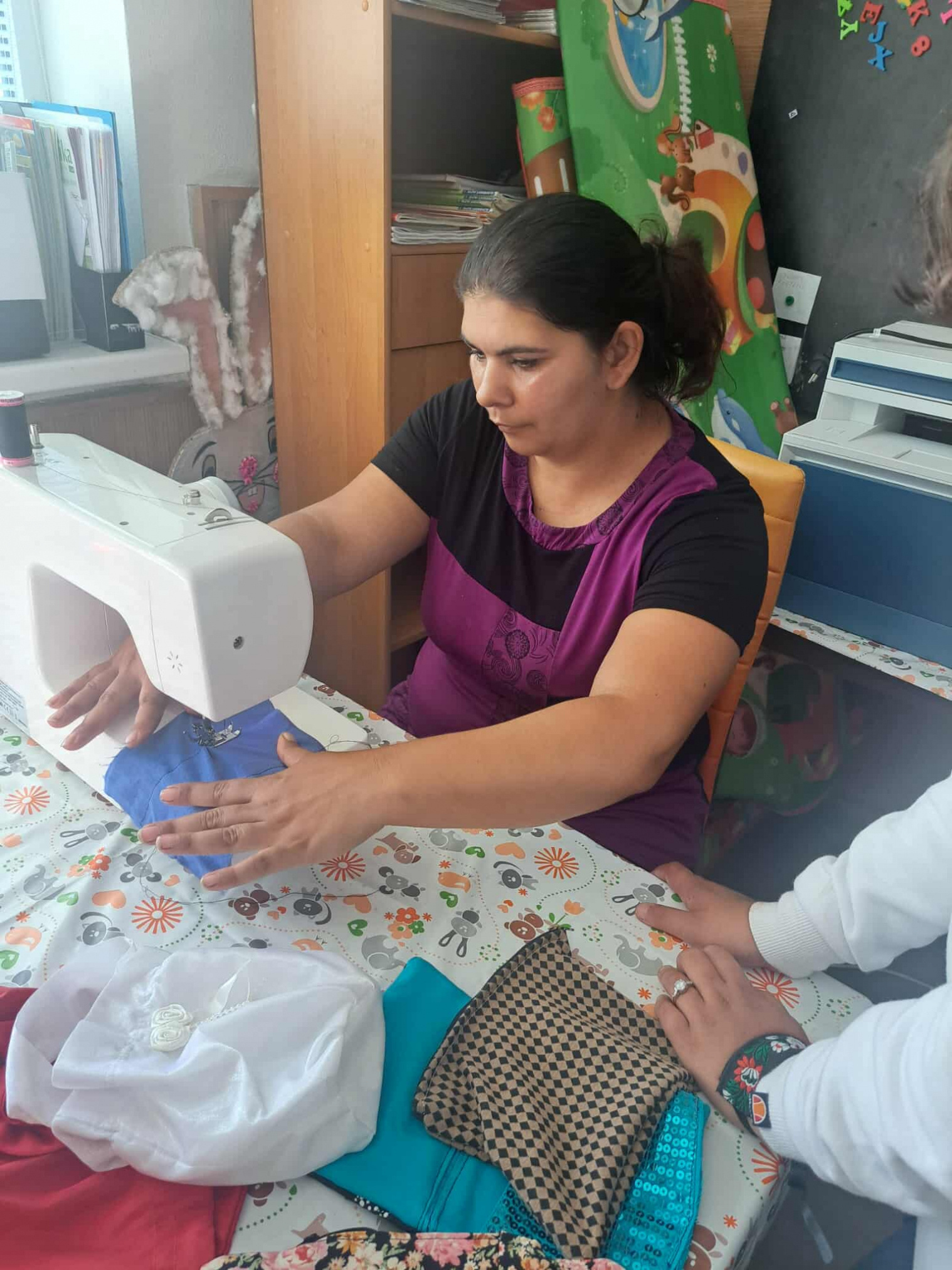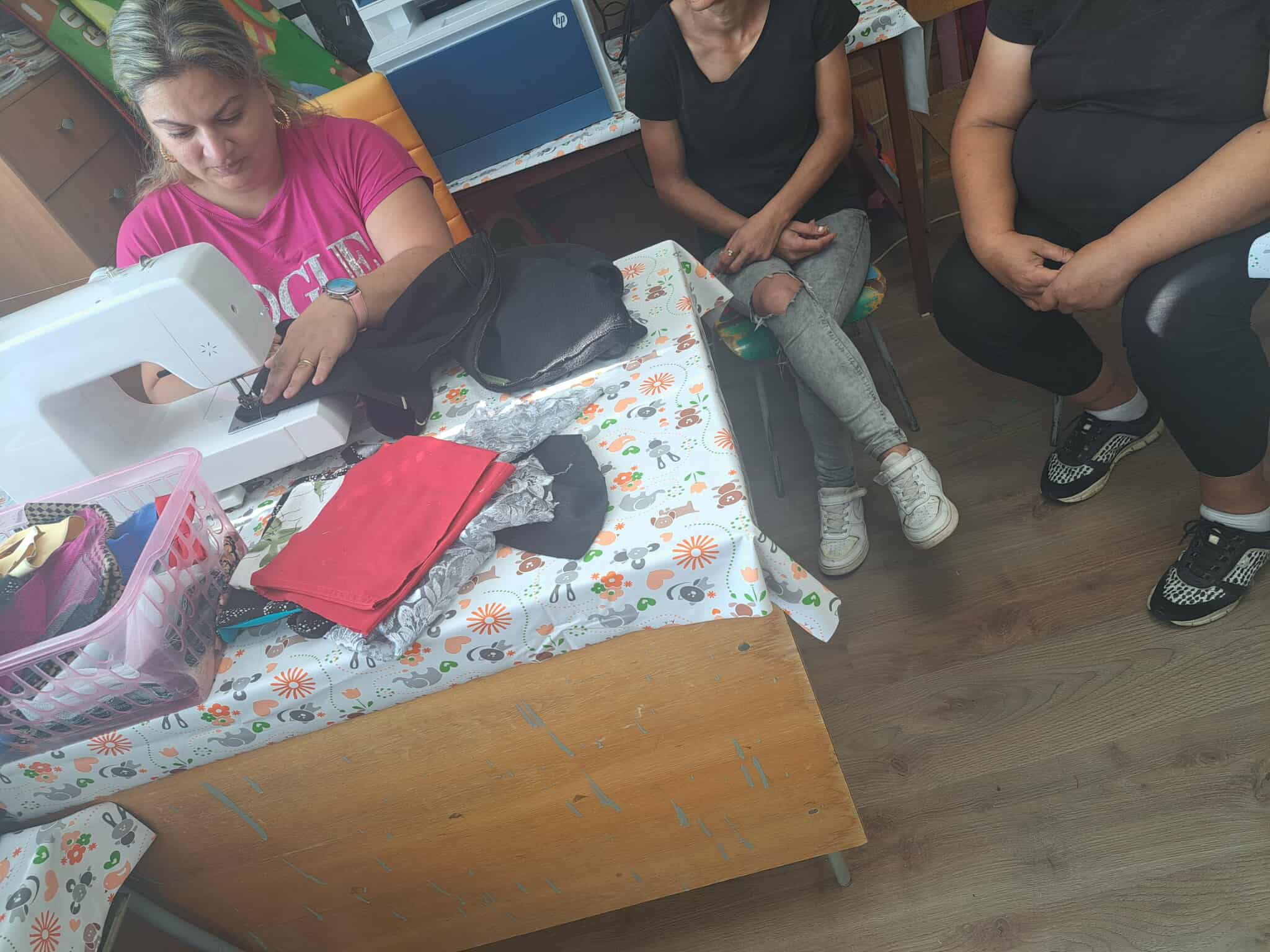 Po úvodnej diskusii o šití sa mamičky pustili do práce pod vedením našej Nenementorky a Nene pracovníčky. Spoločne nastrihali látky, vytvárali originálne vzory a krok po kroku zvládli ušiť vlastné taštičky. Popri tom nechýbali úsmevné momenty, ktoré prispeli k príjemnej a uvoľnenej atmosfére. Na záver sme spoločne opravili aj niekoľko kúskov oblečenia – nohavice, rifle či overal – a vdýchli im tak nový život.
